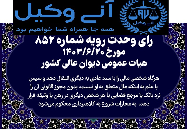تحلیل و بررسی رای وحدت رویه شماره 852